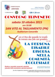 Si svolgerà sabato 10 ottobre, a San Vito al Tagliamento (PN), il Convergno del Triveneto, dal titolo La persona disabile risorsa nella comunità ecclesiale